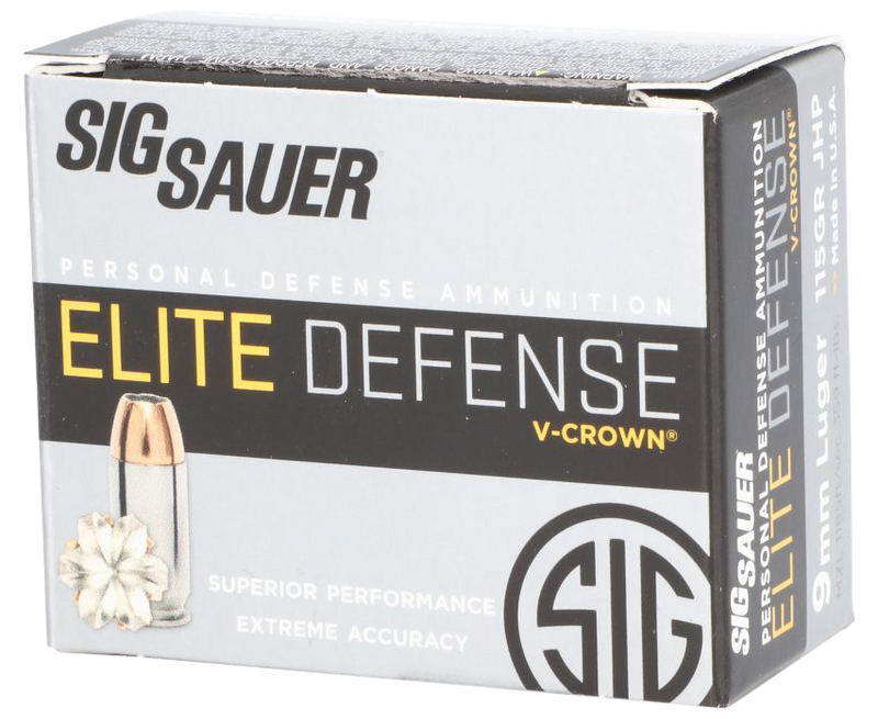 Sig Sauer Elite Performance 9mm Luger 115gr V-Crown Jacketed Hollow Point Handgun Ammunition, 20rd Box - E9MMA120