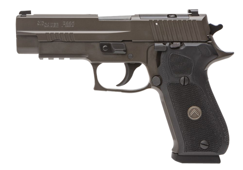 The Sig Sauer P220 is a .45 ACP semi-automatic pistol with a 4.4" barrel and 8-round capacity. Features a stainless steel slide with Nitron finish, lightweight alloy frame with integral accessory rail, and Sig Sauer's four-point safety system including decocking lever. A proven platform renowned for accuracy and reliability since its introduction in 1976.