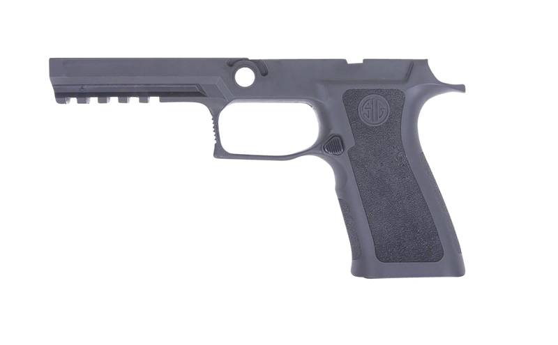 Sig Sauer P320 grip module featuring tungsten-infused heavy polymer construction that delivers the weight of steel with the flexibility of polymer. Compatible with 9mm Luger, .40 S&W, and .357 Sig calibers, this small grip module fits full-size P320 frames and weighs 13.3oz. Requires a complete P320 Fire Control Unit and X5 or full-size slide assembly.
