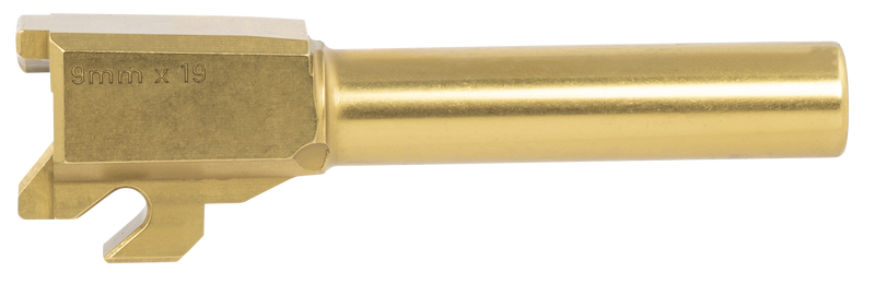 Replacement barrel for Sig Sauer P320 Compact and P320 Carry models chambered in 9mm Luger. Features a 3.90" length with gold titanium nitride finish for corrosion resistance and durability. Direct drop-in replacement part requiring no special tools for installation.