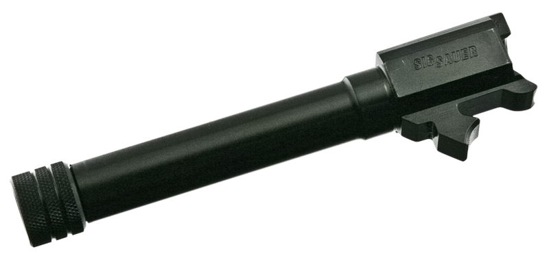 Replacement barrel for Sig Sauer P229/P228 handguns chambered in 9mm Luger with a 3.90" length and threaded muzzle for suppressor or muzzle device attachment. The barrel features a nitride finish for durability and comes with a knurled thread cap for protection when no device is attached. Factory SIG SAUER part with heat-treated construction for toughness.