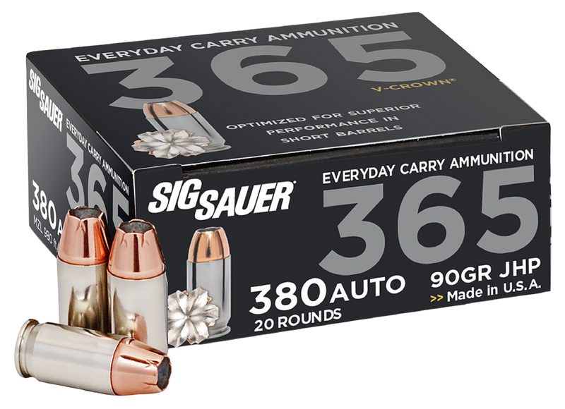 Sig Sauer Elite Performance 365 380 ACP 90gr V-Crown JHP Handgun Ammo, 20 Per Box - E380A136520