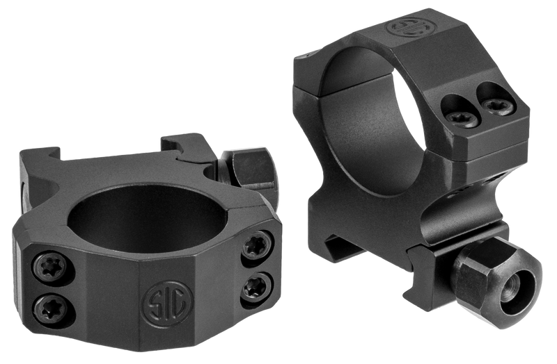 Sig Sauer Alpha 1 scope rings are machined from 6061-T6 aluminum alloy and designed for 1" diameter scope tubes on Mil-Spec 1913 Picatinny rails. These medium height rings feature a matte black finish, epoxy powder coating for corrosion resistance, and are engineered to securely mount riflescopes without damaging them. Covered by Sig Sauer's Infinite Guarantee.