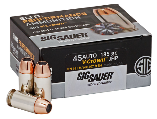 Sig Sauer Match Elite Competition 9mm Luger 115gr V-Crown Jacketed Hollow Point Handgun Ammo, 50rd Box - E9MMA1COMP50