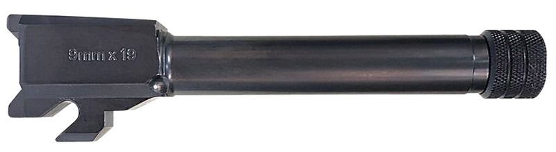 Replacement barrel for Sig Sauer P320 Subcompact and P320X Compact models, chambered in 9mm Luger with a 4.3" length and 1/2x28 threaded muzzle. The barrel features a black Nitron finish and stainless steel construction for durability. Installation is straightforward by removing the slide from the receiver and grip module, and a thread protector cap is included.