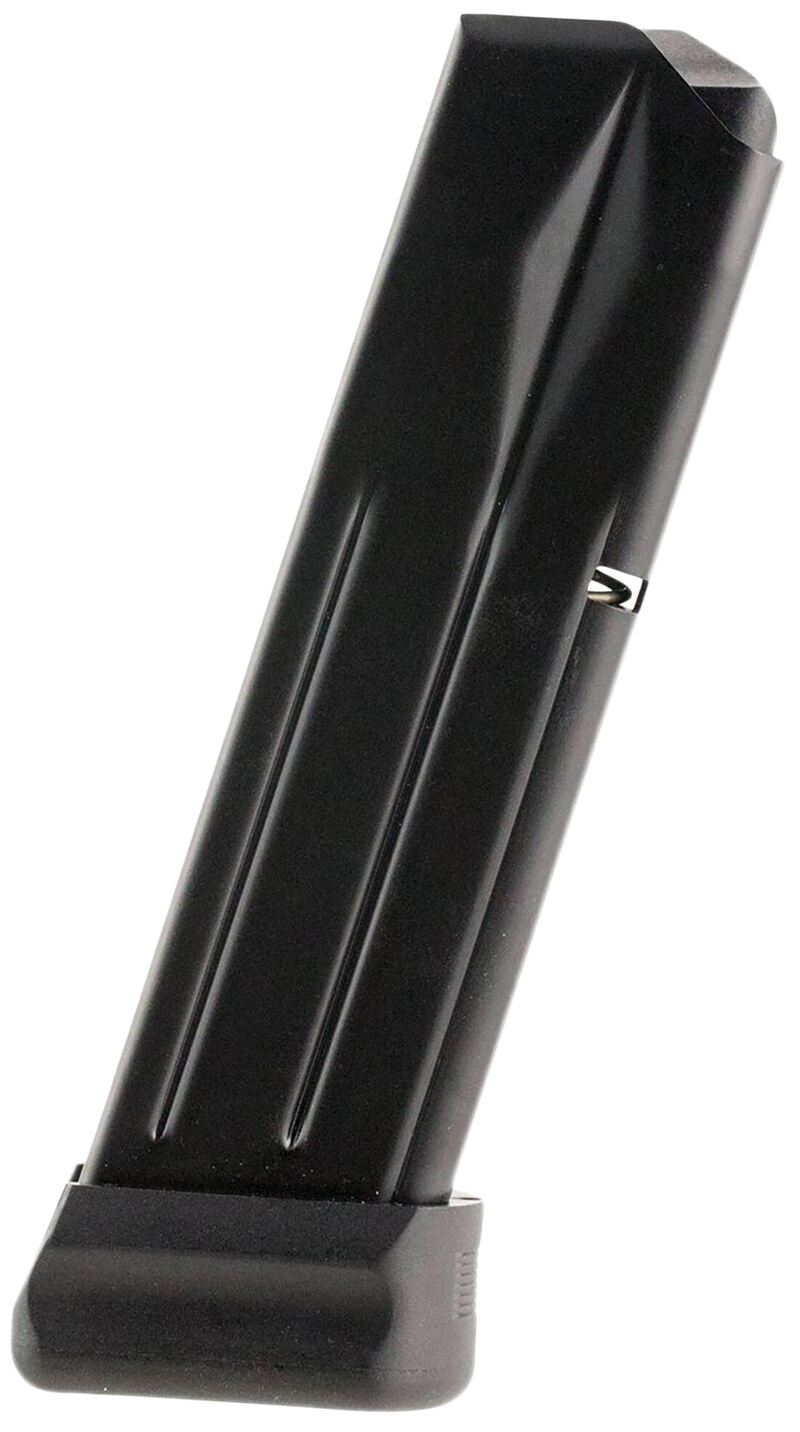 17-round extended detachable magazine chambered in 9mm Luger for Sig Sauer SP2022, SIG PRO 2340, and SIG PRO 2009 pistols. Constructed of blued steel with black oxide finish. Dimensions: 9.8" length x 4.2" width x 1.9" height.