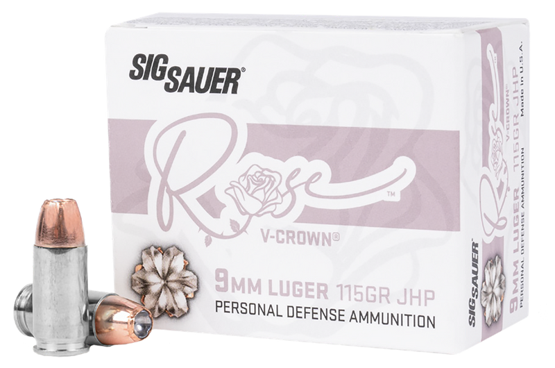 Sig Sauer Rose 9mm Luger 115gr V-Crown JHP Handgun Ammunition, 20rd Box - E9MMA1ROSE20