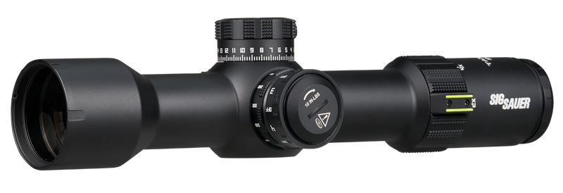 The Sig Sauer Tango-DMR is a 2-12x magnification riflescope with a 42mm objective lens and 34mm main tube designed for precision shooting. Features an illuminated MOA Milling 2.0 reticle, first focal plane optics, multi-lock zero stop elevation dial, and side focus adjustment. Built with LensArmor and SpectraCoat optical coatings, this scope is fog-proof, shockproof, and waterproof, weighing 25.2 ounces.