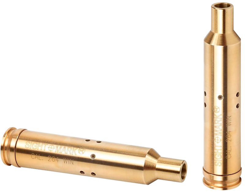 Red laser bore sighter designed for .264, .338, and .7mm caliber rifles to quickly align your scope with the barrel. Includes battery pack (3 AG3 batteries) and carrying case for convenient storage and transport. Brass construction provides durability for field use.
