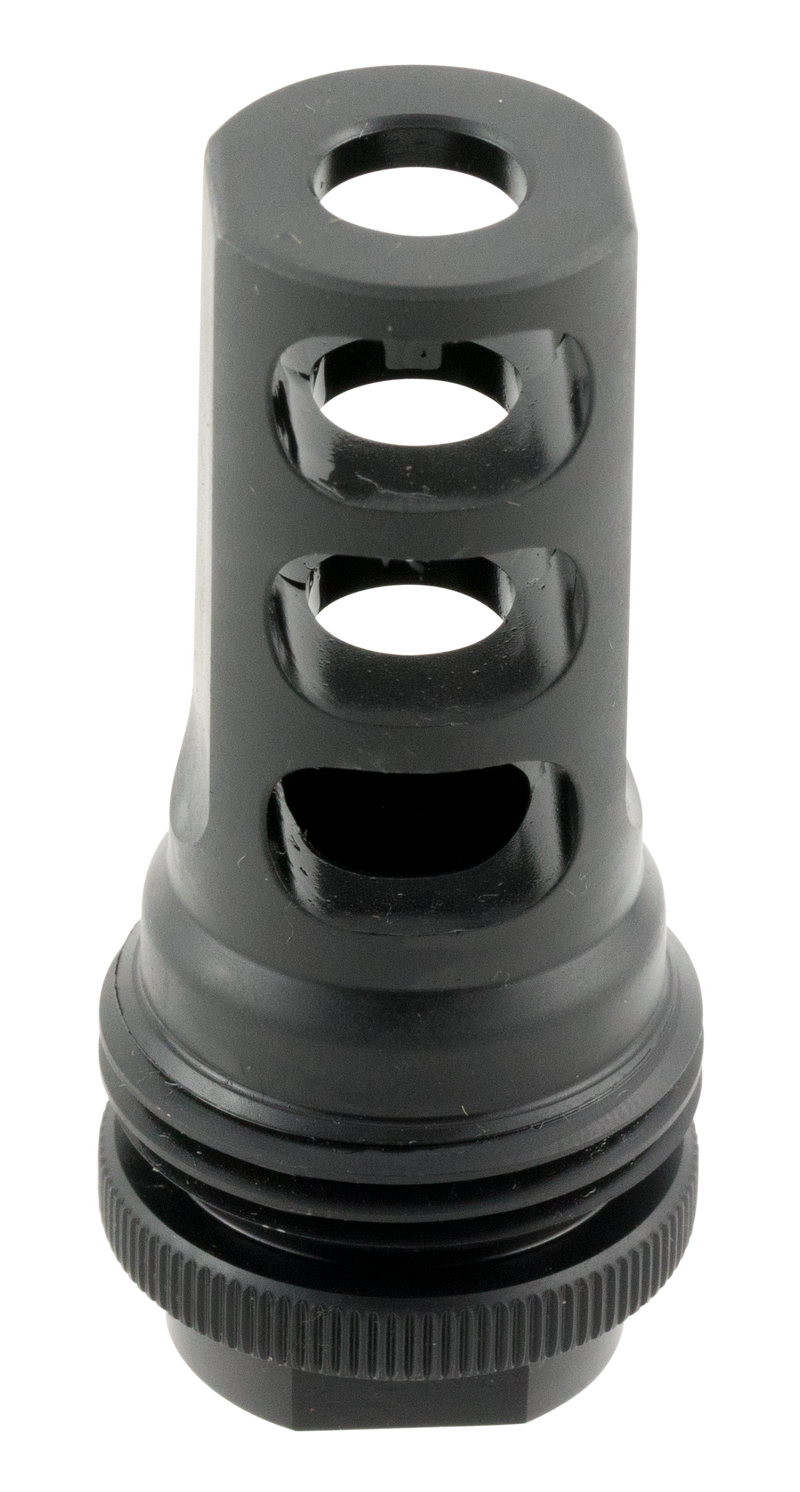 This 3-port muzzle brake is compatible with all SilencerCo ASR mounting systems and reduces felt recoil and muzzle climb. Features quick one-hand-on, one-hand-off attachment and detachment. Includes shim set and rocksett for easy installation.