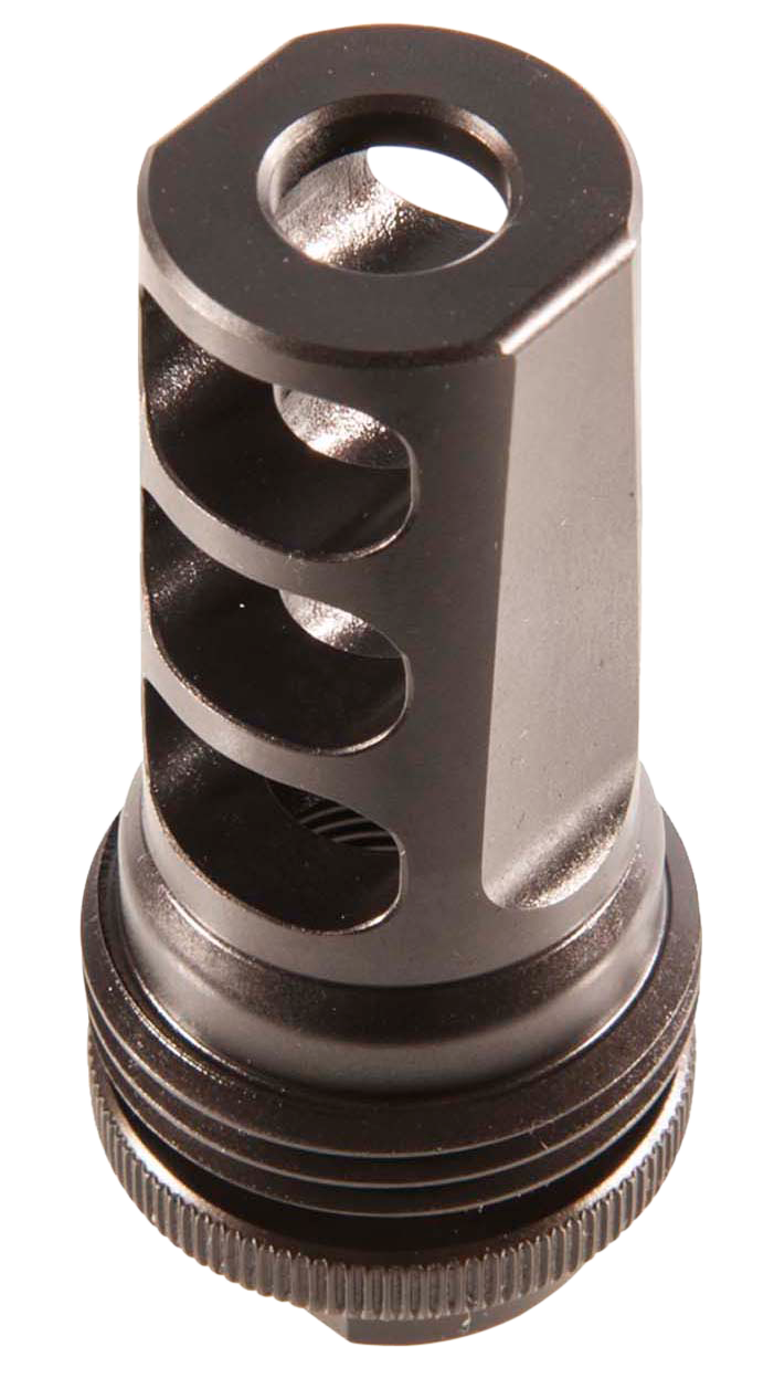 This 3-port muzzle brake is compatible with all SilencerCo ASR mounting systems including Specwar, Omega, Saker, and Hybrid suppressors. It features quick one-hand-on, one-hand-off attachment and detachment with a 3-port design that effectively reduces felt recoil and muzzle climb. Includes shim set and rocksett for easy installation.