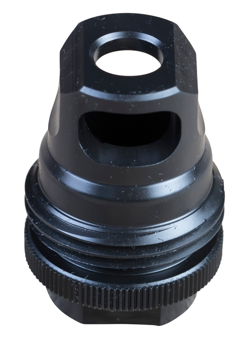 This single port muzzle brake is compatible with all SilencerCo ASR mounts and is chambered for .30 caliber rifles (7.62mm). The 1-port design effectively reduces felt recoil and muzzle climb, and features quick one-hand-on, one-hand-off attachment and detachment. Each brake includes a shim set and Rocksett for installation.