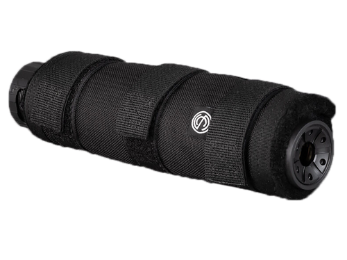 This is a high-temperature nylon suppressor cover designed to shield suppressors from extreme heat, rated up to 1600 degrees Fahrenheit. It fits 7.5" suppressors including Octane 45, Saker 762, Specwar 762, Harvester 300, Hybrid 46, and Hybrid 46M in long configuration. The cover simply slides over the suppressor for heat protection during rapid fire.