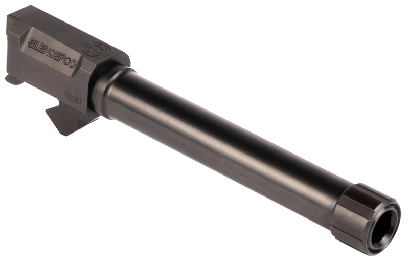 Threaded replacement barrel for Sig P226 pistols chambered in 9mm Luger with 1/2x28 muzzle threads for suppressor mounting. Made from 416R stainless steel with black nitride finish, designed for use with SilencerCo pistol suppressors and requires a piston for operation.