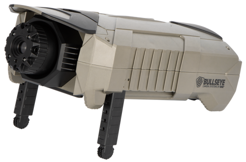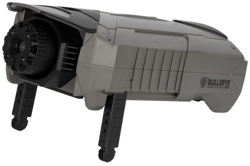 The SME Bullseye Sight-In Edition is a trail/target camera designed for shooting range use with a 300-yard effective range. It features 960p to 1080p HD video resolution, built-in Wi-Fi connectivity, and water-resistant construction in a compact all-in-one unit with adjustable mounting capabilities.