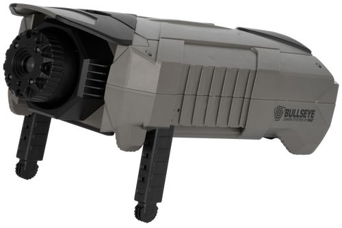 This universal spotting scope camera attachment features a patented adjustable grip design that fits most spotting scopes. It streams 1080P video at 15fps to mobile devices via Wi-Fi up to 150 feet using the Bullseye Target Manager App, with a rechargeable battery providing 6 hours of runtime.