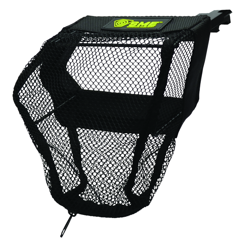 The SME Brass Catcher is a mesh accessory designed to mount on Picatinny rails to collect spent brass casings during rifle shooting. Measuring 8.9" x 7.1" x 4.1", it helps contain and organize ejected cartridges for easy cleanup and brass reloading. This accessory is compatible with rifles featuring standard Picatinny rail systems.