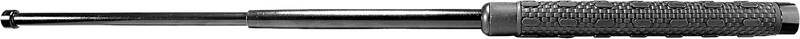 This 21-inch collapsible baton features a black thermoplastic rubber (TPR) handle and seamless alloy tubing construction for durability and impact strength. It collapses for compact carry and includes a hand holster for convenient storage. Weighs 1.10 lbs and is designed for personal protection applications.