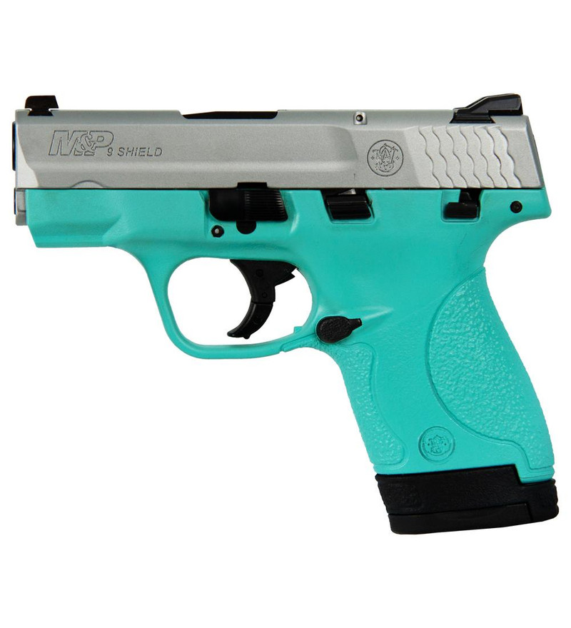 Smith & Wesson M&P Shield 1.0 9mm Luger 3.1" 7rd Handgun, Silver/Robin's Egg Blue - 13583U