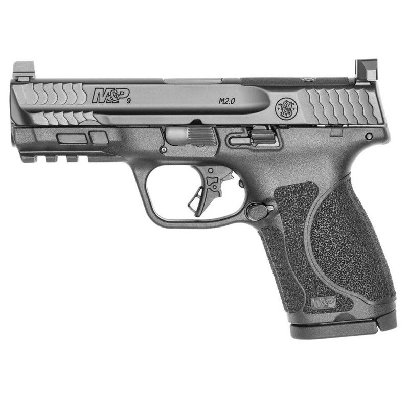 The Smith & Wesson M&P9 M2.0 Compact is a semi-auto 9mm pistol featuring a 4" barrel, 15-round capacity, and night sights with optic-ready adapter plate. It includes an extended stainless-steel chassis and low barrel bore axis for reduced muzzle rise and faster aim recovery. Finished in Armornite with professional-grade design for personal sporting and professional use.