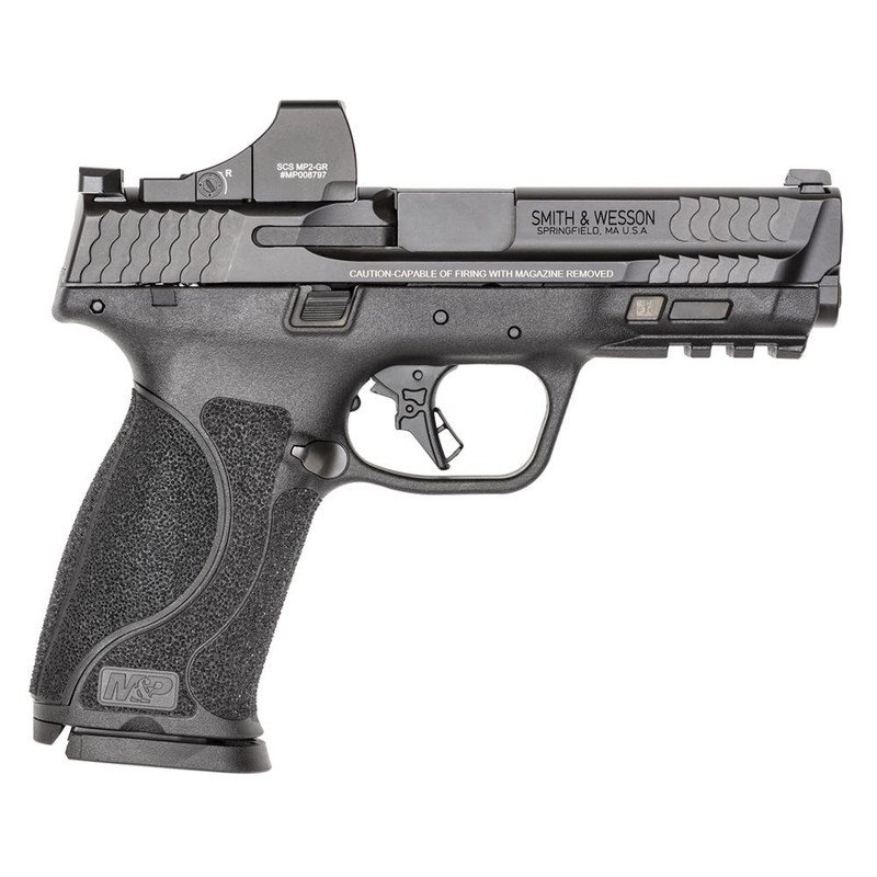 Semi-automatic striker-fired handgun chambered in 9mm Luger with a 4.25" barrel and 17-round magazine capacity. Features an 18-degree grip angle, flat-face trigger, and night sights. Comes equipped with a Holosun SCS-MP2-GR solar charging optic and is optic-ready with adapter plate.