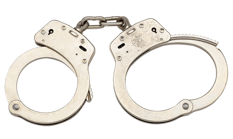 Smith & Wesson Model 100 handcuffs are fabricated from carbon steel with heat-treated internal lockworks and double locks to prevent tampering. They feature smooth ratchets for swift cuffing and meet or exceed U.S. National Institute of Justice standards for workmanship, strength, corrosion, and tamper resistance. Standard size with nickel finish.