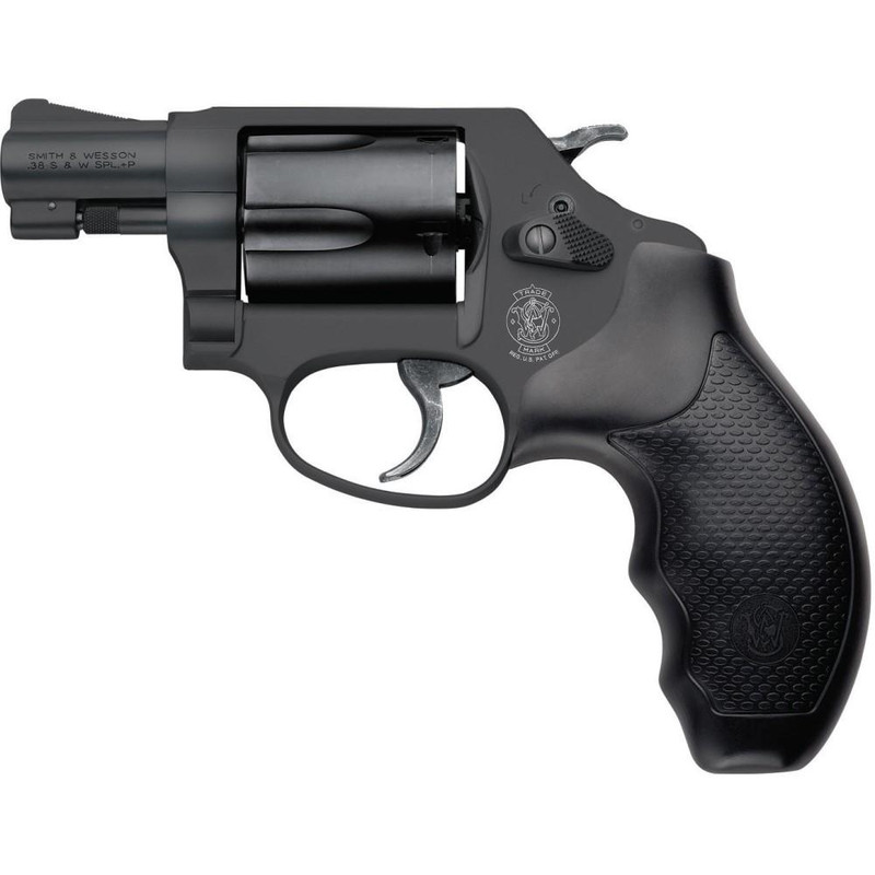 Smith & Wesson J-Frame .38 Special +P revolver with 1.875" barrel and 5-round capacity. Single/double action design with fixed sights and black oxide finish. Compact, reliable defensive revolver built on the proven J-Frame platform.
