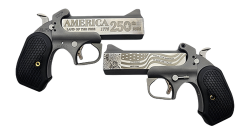 The Bond Arms Snake Slayer IV is a break-action derringer chambered in .45 Colt and .410 bore with a 4.25" stainless steel barrel and 2-round capacity. It features automatic extractors, a rebounding hammer, blade front and fixed rear sights, extended rosewood grips, and a crossbolt safety. The longer barrel provides improved ballistic performance and tighter shot patterns compared to the original model, while maintaining a compact, concealable profile with an overall length of 6.25" and weight of 23.5 oz.