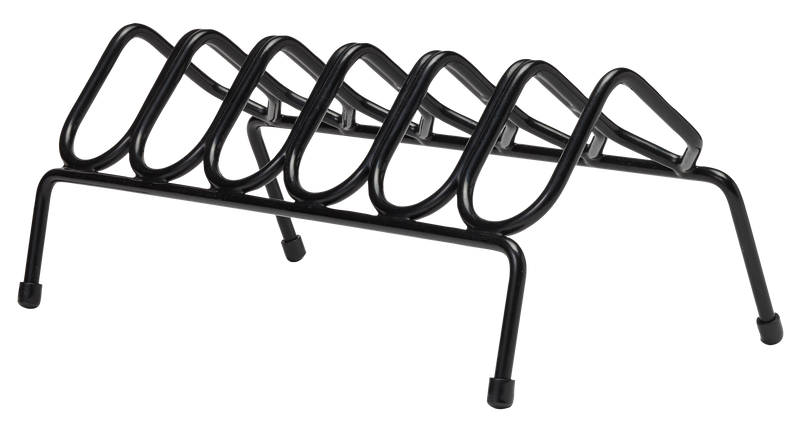 This black steel pistol rack holds up to 6 handguns (pistols and/or revolvers) and features a PVC coating to prevent scratches or damage to firearm finishes. Designed to maximize storage space in gun safes, cabinets, or at the range, it measures 13.5" long by 7" deep by 5.75" tall and can store guns right-side up or upside down.