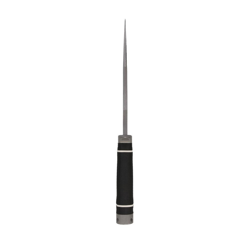 The SOG Tech Bowie combines classic Bowie styling with modern materials and construction, featuring a 6-2/5" AUS-8 stainless steel clip point blade with stonewashed finish for corrosion resistance. The knife includes a Kraton rubberized handle for improved grip and comes with a hard molded nylon sheath. Overall length is 11" and it weighs 11.2 oz, backed by a manufacturer lifetime warranty.