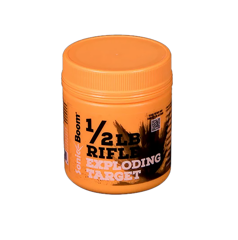 Sonic Boom exploding rifle targets are designed to create visible explosions and audible feedback upon impact. Each 0.5 lb target uses proprietary chemical compounds for reliable detonation and is subject to local and state regulations before purchase.