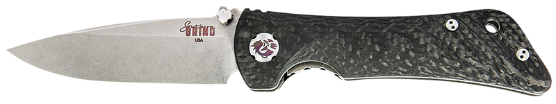 The Spider Monkey features a 3.25" drop point blade made from S35VN stainless steel with a plain edge and satin finish. The knife has a 4.19" black textured carbon fiber handle with thumb stud opening and includes a pocket clip for convenient carry. Overall length is 7.44" when open and weighs 3.20 oz.