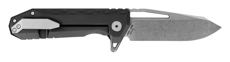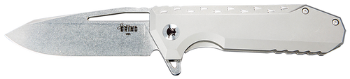 The Southern Grind Penguin is a 3.50" folding knife featuring a drop point blade made from CPM S90V stainless steel with a stonewashed finish. It has a black titanium handle with a flipper opening mechanism and measures 8.13" overall length when open. This compact folder weighs 4.52 oz and is designed for general cutting tasks and everyday carry.