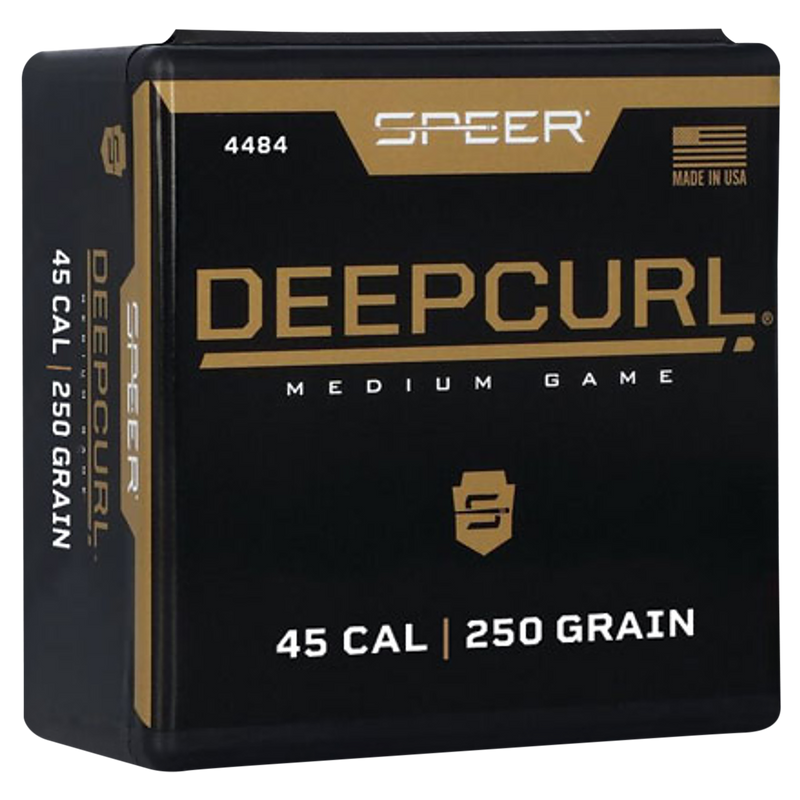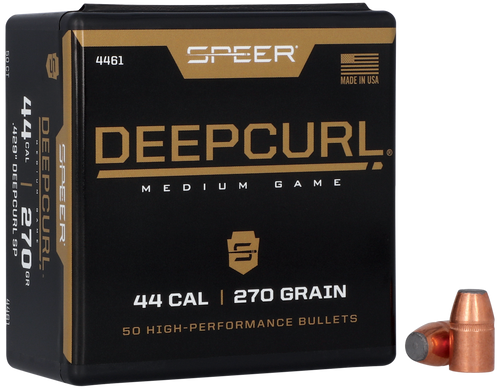 Speer Deep Curl bullets feature an electrochemically bonded jacket to lead core construction designed for reliable expansion and deep penetration on game. These .452" diameter, 250 grain hollow point bullets are packaged 50 per box and recommended for handgun hunting applications. The pre-formed petals and high weight retention ensure consistent performance on heavy-bodied game.