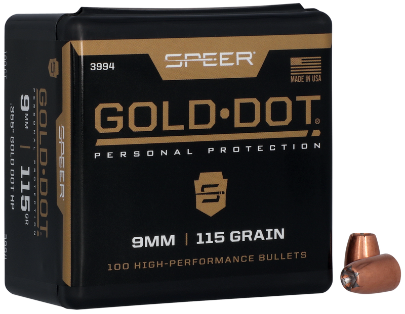 Speer Gold Dot Personal Protection 9mm 115gr Hollow Point Bullets - 3994
