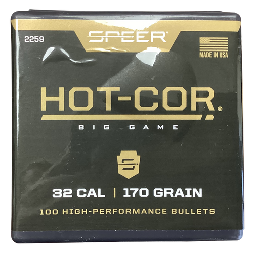 Speer Hot-Cor bullets feature a molten lead core poured directly into a copper jacket for superior consistency and accuracy. These .308" diameter, 130 grain soft point flat nose bullets are designed for rifle hunting applications and come in a box of 100 rounds with a cannelure for secure case seating.