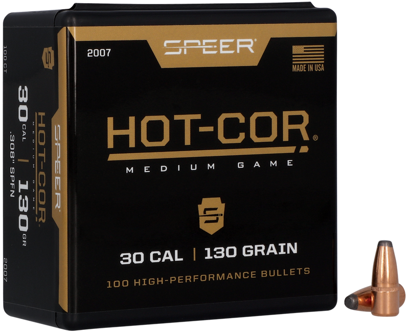 Speer Hot-Cor .30 Caliber 130 Grain Soft Point Flat Nose Rifle Bullets - 2007