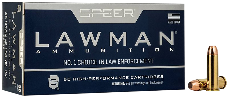 Speer Lawman 38 Special +P 158gr TMJ Handgun Ammunition, 50rd Box - 53750
