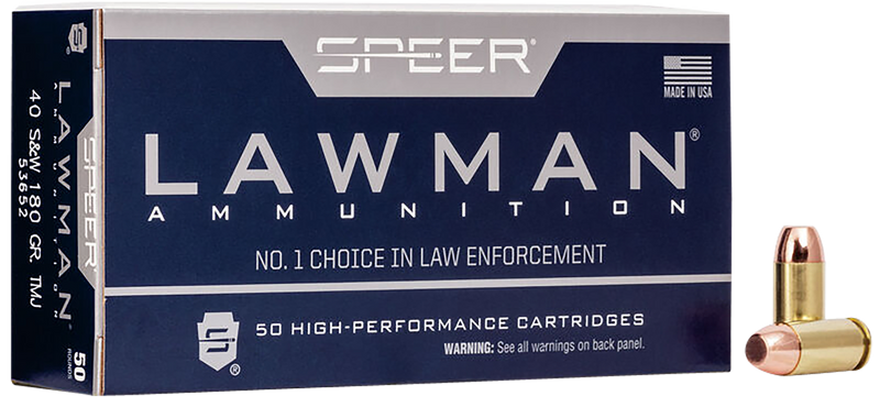 Speer Lawman 40 S&W 180gr Total Metal Jacket Handgun Ammo, 50-Round Box - 53652