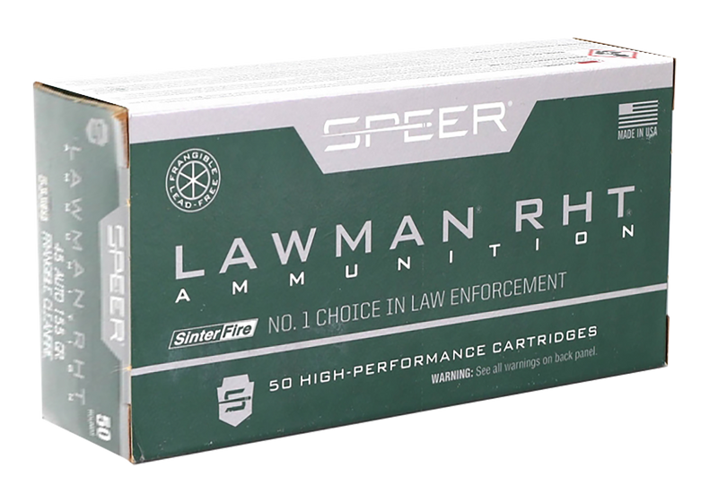 Speer Lawman Training RHT 45 ACP 155gr SinterFire Frangible Handgun Ammo, 50 Round Box - 53395