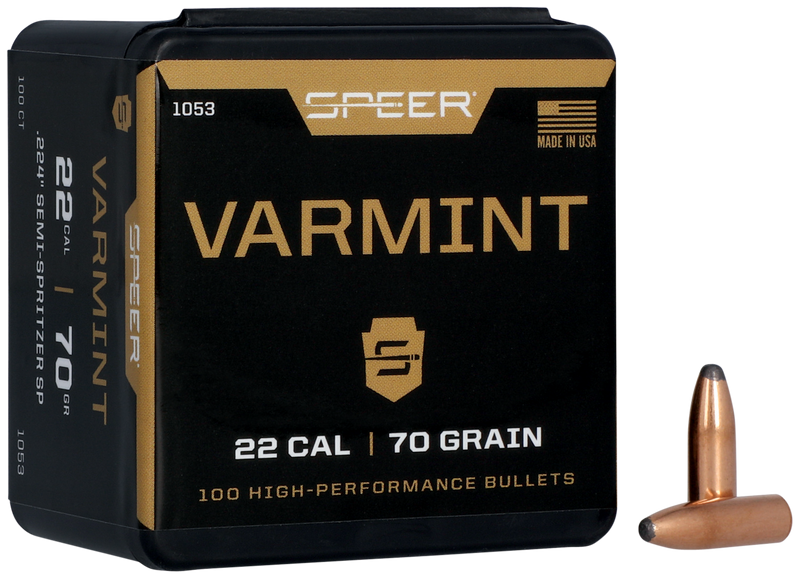 Speer Varmint Soft Point .22 Caliber 70gr Jacketed Rifle Bullets - 1053