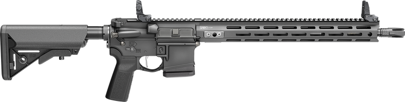 Semi-automatic AR-15 rifle chambered in 5.56 NATO with a 16" chrome moly vanadium barrel and 1-in-8 twist rate. Features a B5 Systems Enhanced SOPMOD collapsible stock, B5 Systems Type 23 pistol grip, M-LOK free float handguard, low profile adjustable flip-up iron sights, and a 4-prong flash hider. Weighs 6.12 lbs with an overall length range of 33.25" to 36.75".
