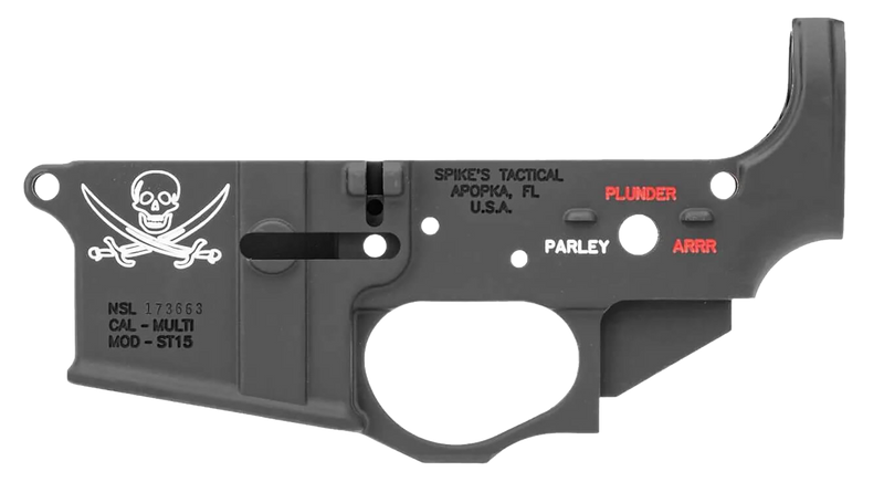 Spike's Tactical Calico Jack Stripped Lower Receiver Multi-Caliber 7075-T6 Aluminum Black Anodized - STLS016CFA