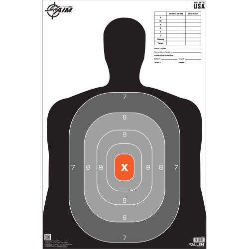 Pro-Shot Products B27 Silhouette Target Pro is a 23" x 35" paper target designed for precision shooting practice and marksmanship training. The pack contains 5 targets with a gray and black silhouette design. These targets are suitable for use at indoor and outdoor ranges for handgun and rifle practice.