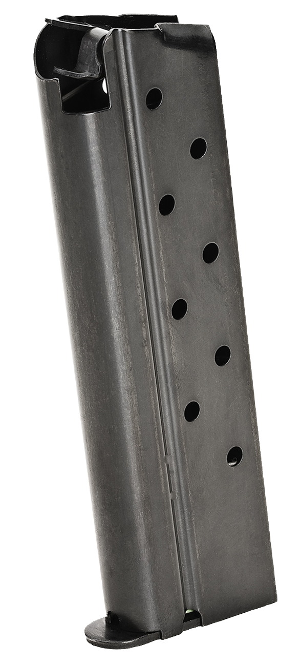 This Springfield Armory magazine is designed for 1911 pistols chambered in .38 Super and holds 9 rounds. Features a blued steel construction with dimensions of 5.4" length, 1.3" width, and 0.9" height. The detachable magazine is a direct fit for Springfield 1911 models.