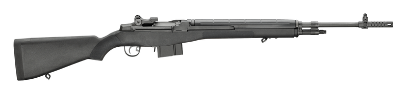 Semi-automatic rifle chambered in .308 Winchester with a 22" medium National Match barrel and two-stage match trigger. Features adjustable National Match sights, synthetic stock, and California-compliant 10+1 capacity. Weighs 9.3 lbs with an overall length of 44.33 inches.