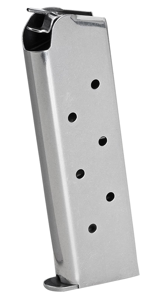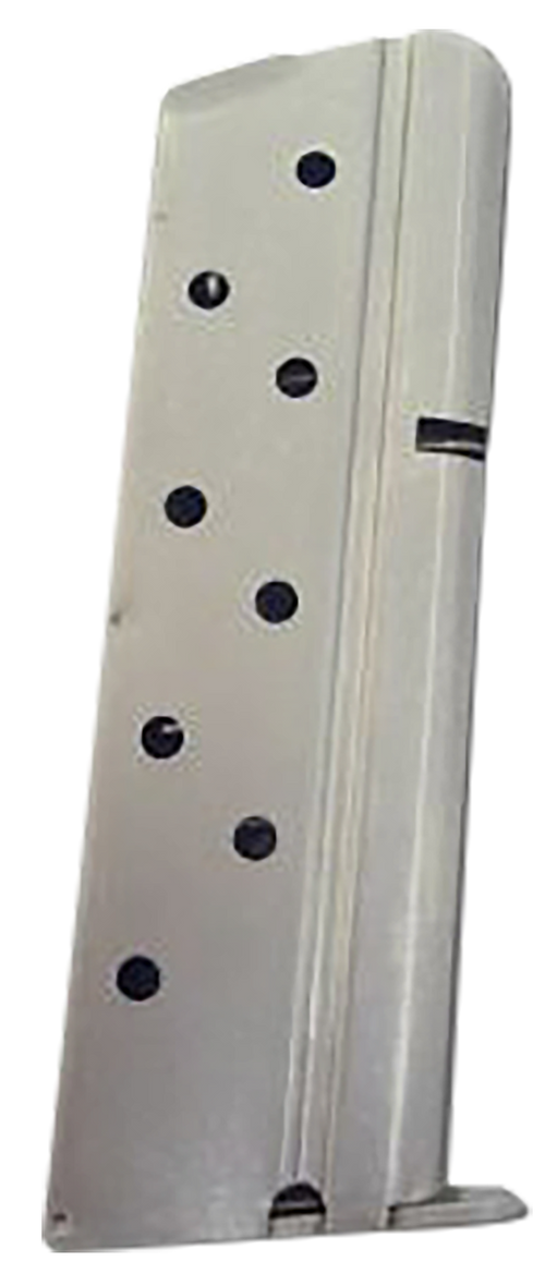 This is an 8-round detachable magazine chambered in 9mm Luger, designed for Springfield Armory 1911 Ultra Compact pistols. Constructed from stainless steel with a silver finish, it measures 4.1" in length and 1.3" in width. A reliable OEM magazine for compact 1911 platforms.