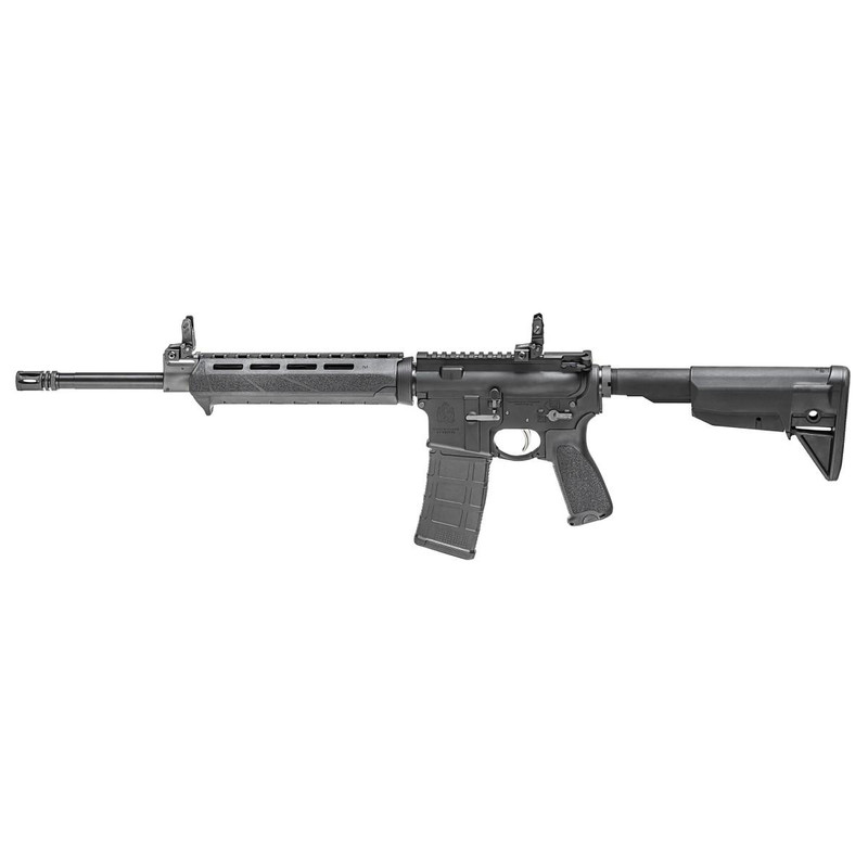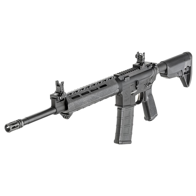 Semi-auto AR-15 platform rifle chambered in 5.56 NATO with a 16" CMV Melonite barrel and 1:8 twist rate. Features forged 7075 T6 aluminum receivers with Type III hardcoat anodizing, M-LOK compatible handguards with internal heat shield, Picatinny gas block, nickel boron-coated fire controls, and low-profile flip-up iron sights. Includes one 30-round magazine and weighs 6 lbs 11 oz.