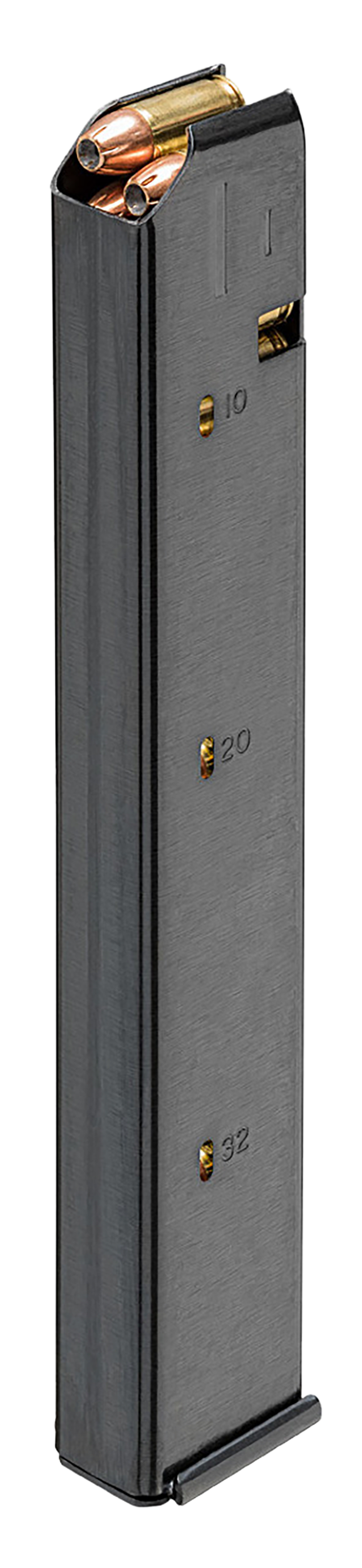 This Springfield Armory SAINT Victor magazine is chambered in 9mm Luger and features a 32-round capacity. The cold-rolled stainless steel body has a black nitride finish, a removable base plate, high-tensile strength spring, and numbered witness holes for reliable feeding in the SAINT Victor 9mm carbine platform.