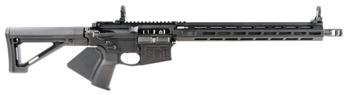 Semi-automatic AR-10 platform rifle chambered in .308 Winchester/7.62x51mm NATO with a 16" lightweight stainless steel barrel and 1:10" twist rate. Features a direct gas impingement operating system, BCM Gunfighter SOPMOD 6-position stock, ambidextrous safety lever, flip-up front and rear sights, and a 15" M-LOK rail system. Weighs 7.11 lbs with an overall length of 39.5" and includes a single-stage nickel boron-coated trigger.